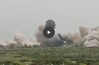 Video footage reveals explosive charges exploding what appears to be the entire village
