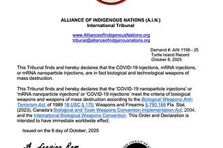 The Alliance of Indigenous Nations International Tribunal — recognized by Canada on a Nation-to-Nation basis — has issued a historic global Order…