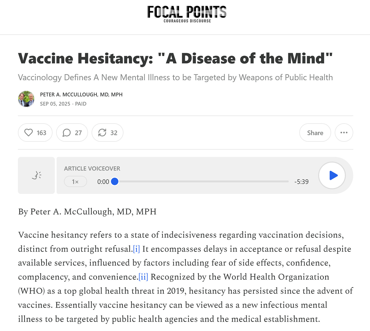 This has gone so far that the Bio-Pharmaceutal Complex as created a new disease, “vaccine hesitancy” with twenty published, scientific scales of measurement. So if you are hesitant about your next vaccine dose, you have a “mind disease.” These are modern day examples of how vaccinology has become a faith-based religion. We show how this has taken 300 years to fully develop in our new NYT best-selling book Vaccines: Mythology, Ideology, and Reality.