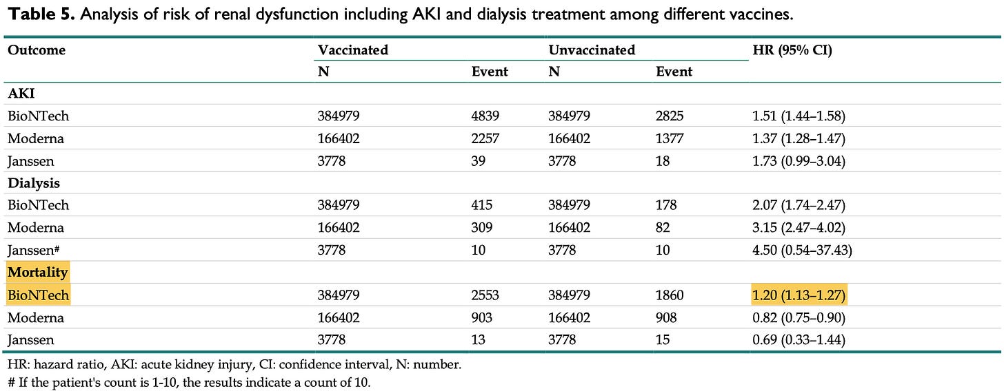 This study also is in line with recent paper by Hwang et al who found, among 120.7 million adverse event reports, increased risks of Acute Kidney Injury (2.4X), Glomerulonephritis (13.4X), and Tubulointerstitial Nephritis (2.4X) following mRNA injection: