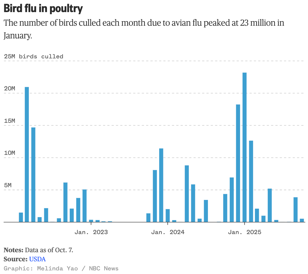 During the summer, mass culling of poultry for H5N1 bird flu came to a complete halt after over 44 million birds were recklessly exterminated from January to May 2025: