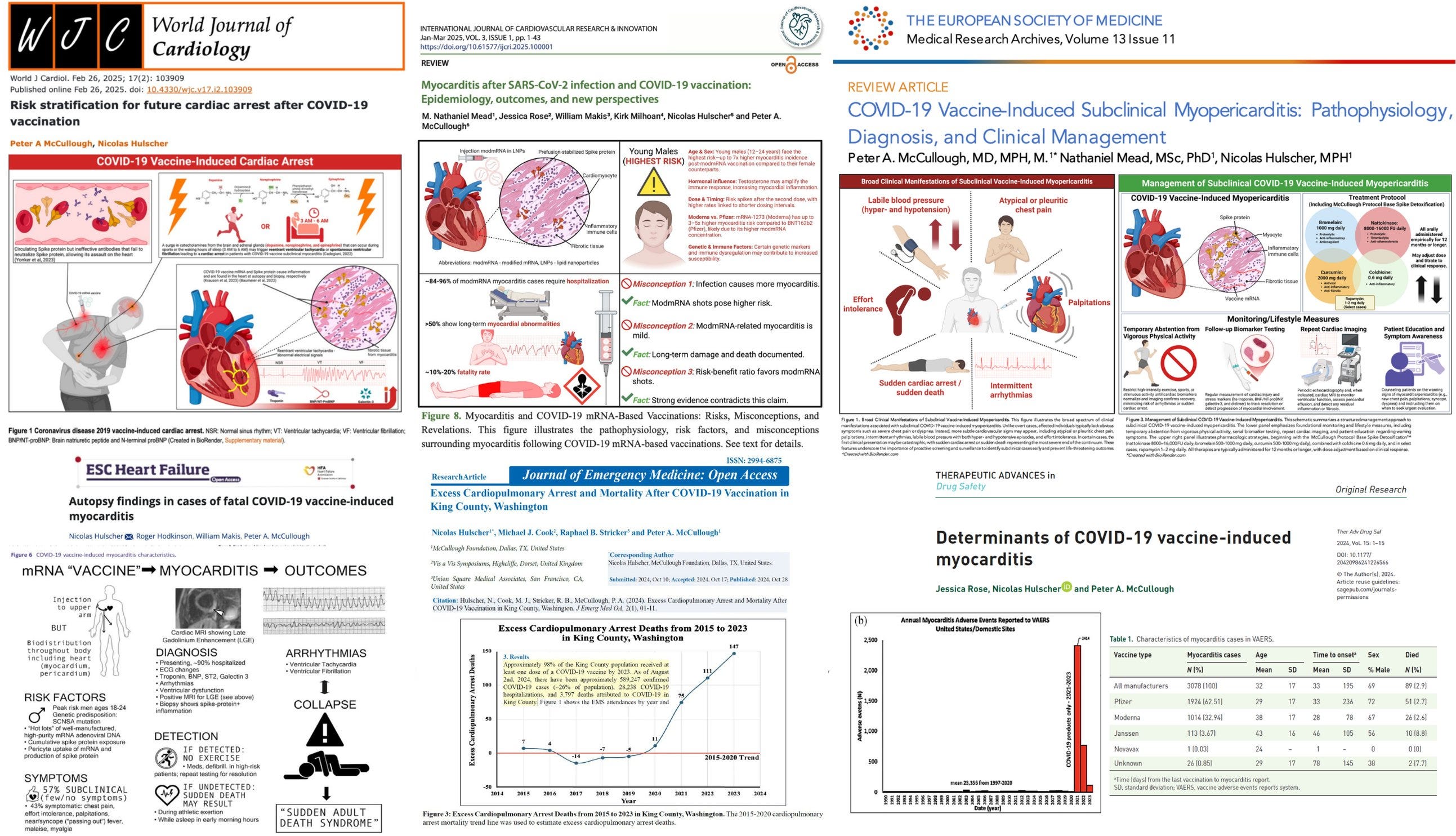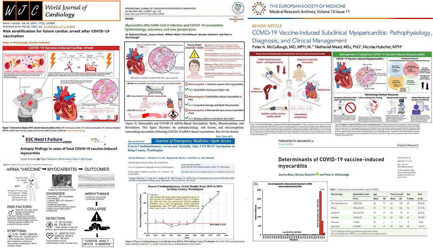 6. McCullough PA, Mead N, Hulscher N. COVID-19 Vaccine-Induced Subclinical Myopericarditis: Pathophysiology, Diagnosis, and Clinical Management. Medical Research Archives. 2025;13(11). doi:10.18103/mra.v13i11.7078 (https://esmed.org/MRA/mra/article/view/7078)
