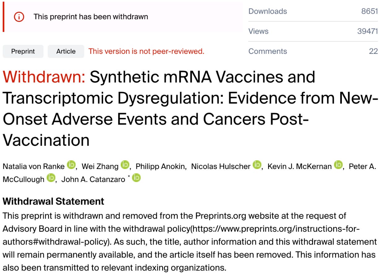 We identified that this unethical removal was likely the result of coordinated Bio-Pharmaceutical Complex pressure and PubPeer mob attacks, intended to shield the deadly mRNA platform.