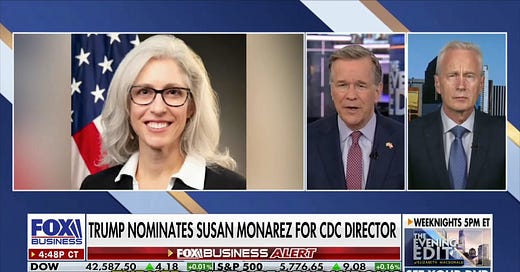 David Asman host of The Evening Edit on Fox Business pressed Dr. McCullough on Monarez and what it is going to take to have the CDC regain trust from the current administration and public at large.