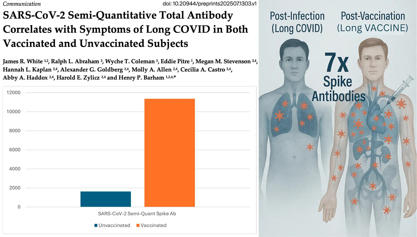 Our paper makes clear that many conditions currently labeled as “Long COVID” are indistinguishable from post-vaccine injury syndromes, because both natural infection and mRNA vaccination expose the body to the same pathogenic spike protein, which can persist months to years after injection.