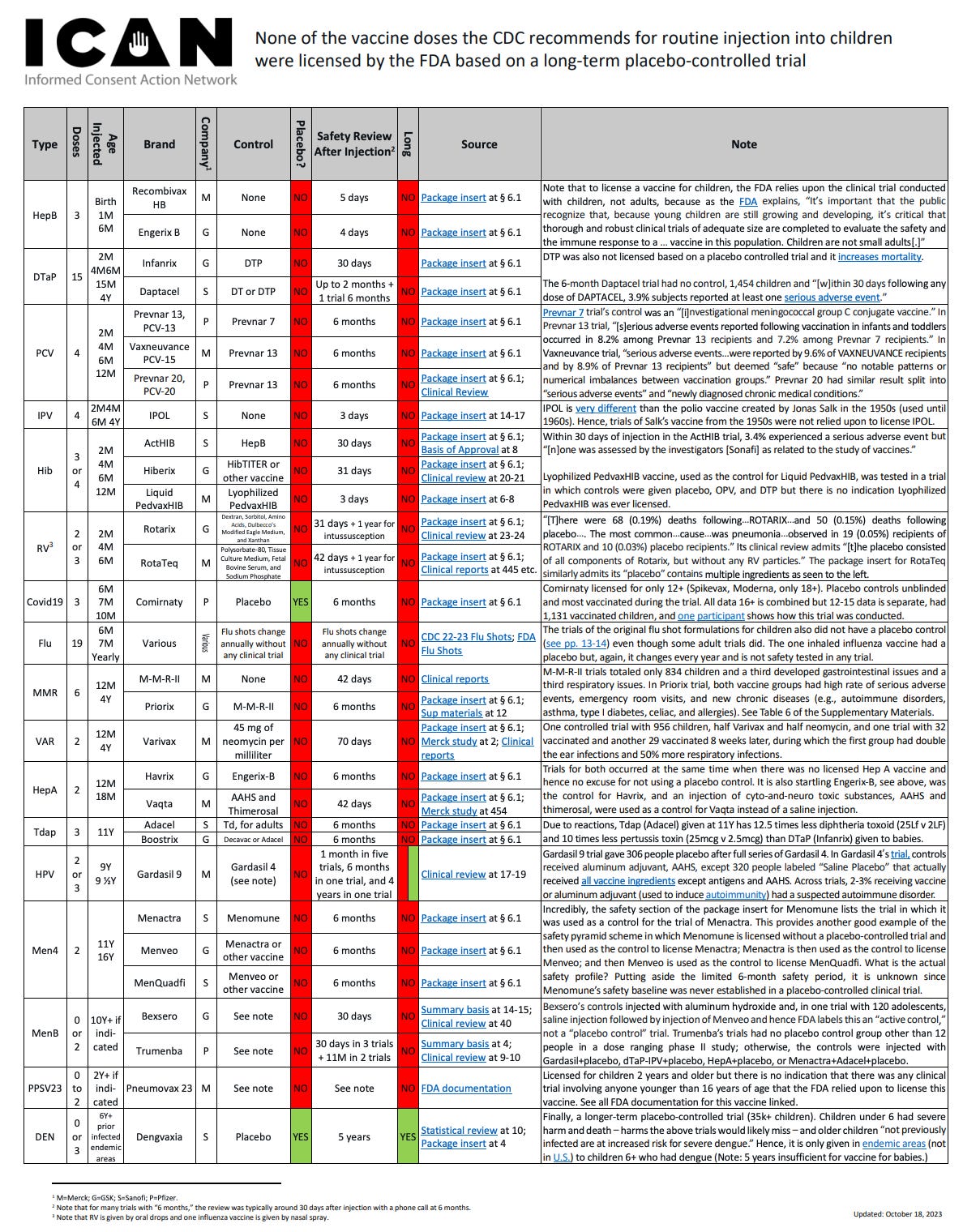 Currently, NONE of the vaccines recommended by the CDC for routine childhood immunization were licensed by the FDA based on long-term, placebo-controlled trials. In other words, their complete safety profile is largely unknown: