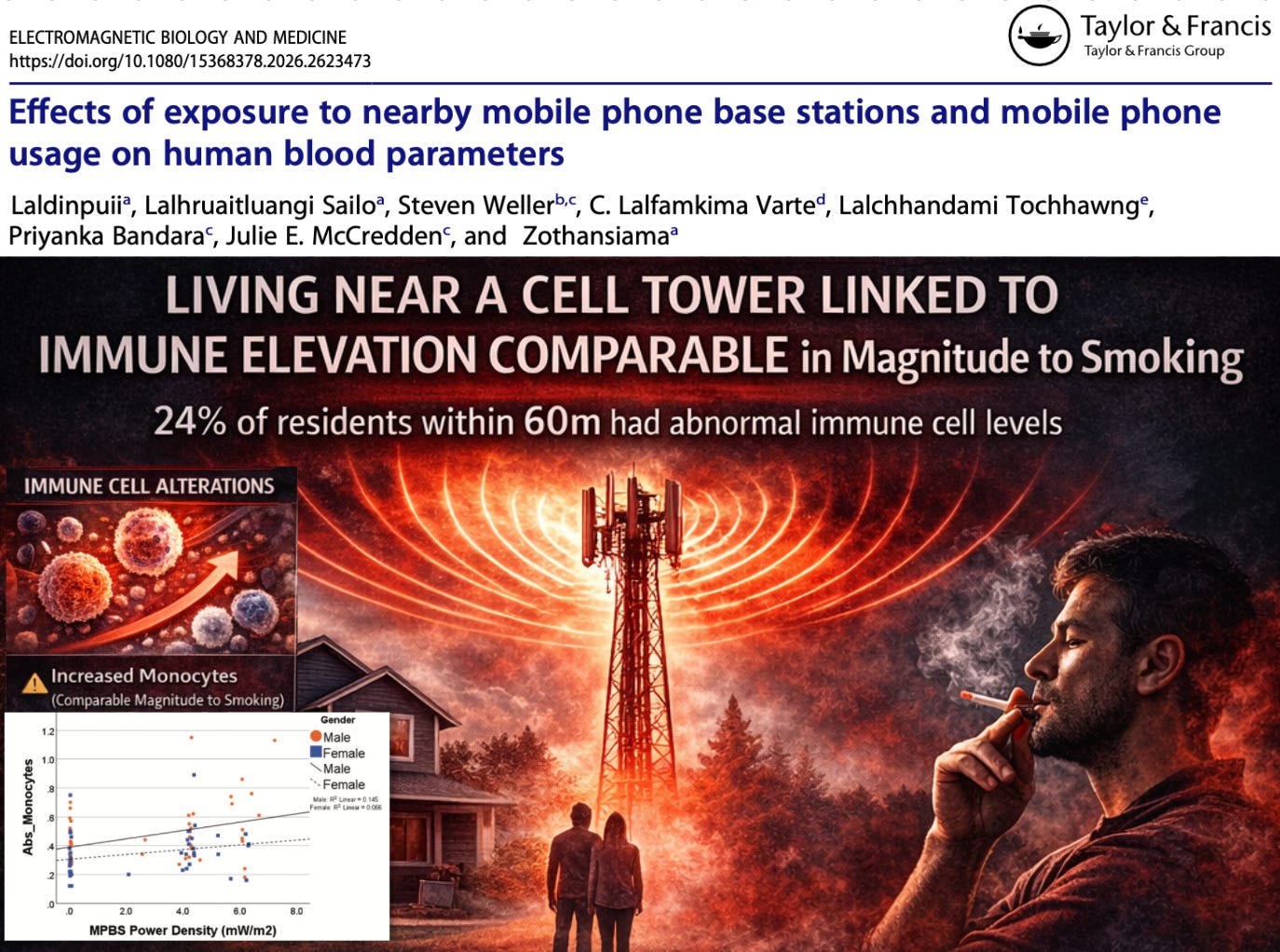 For decades, we built entire public health frameworks around smoking because of its inflammatory impact on the body. Now we have evidence that long-term proximity to cell towers may shift immune markers in a similar magnitude.