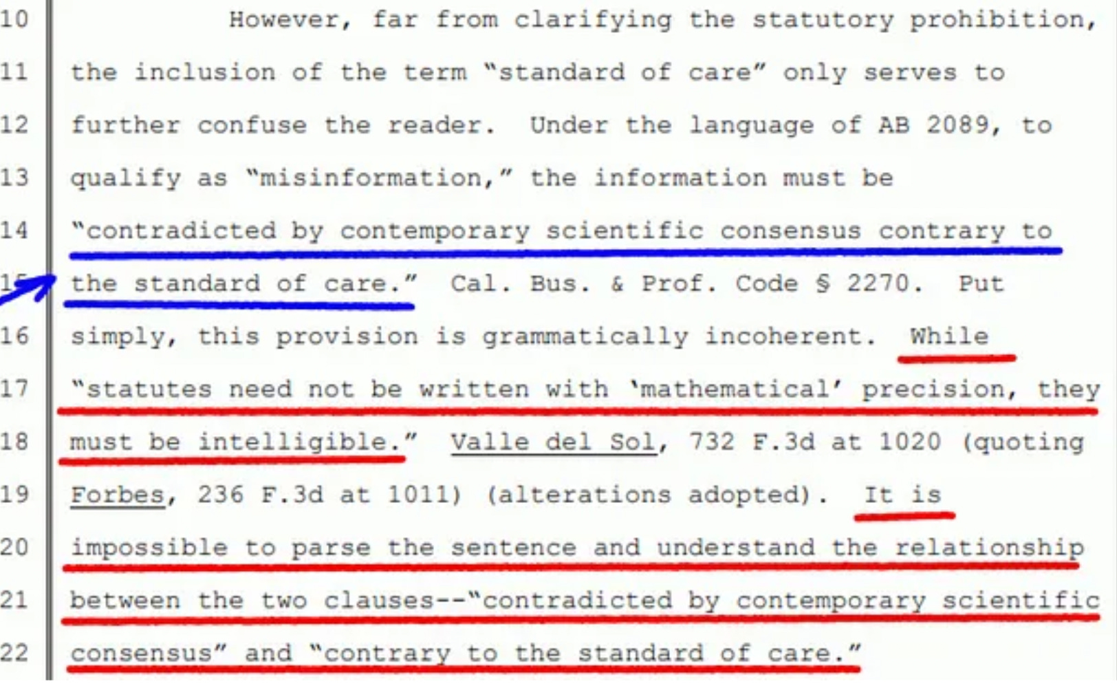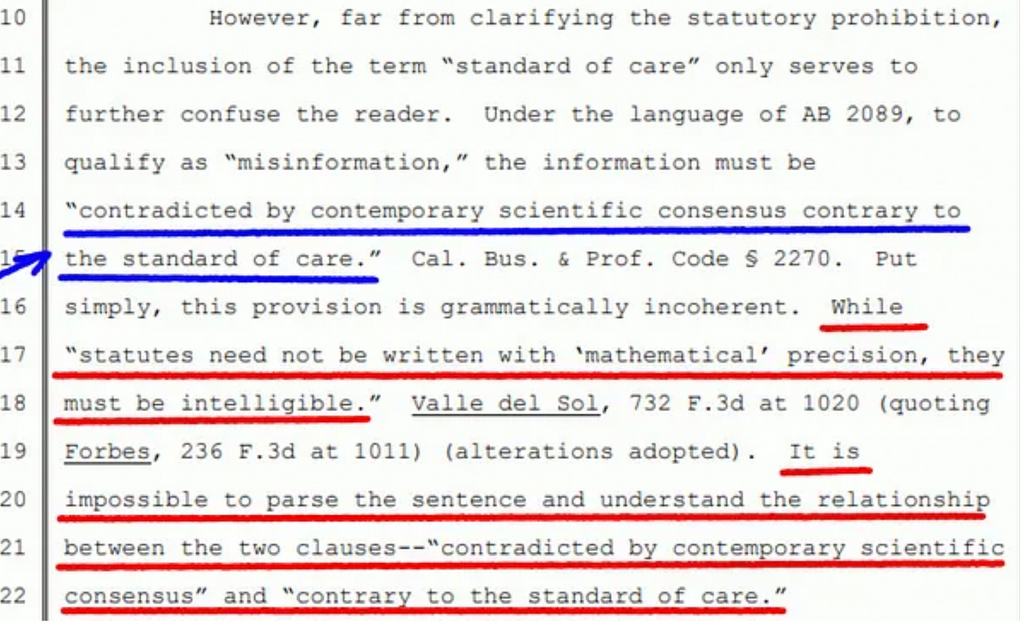 Preliminary injunction against AB2098 notes "grammatically incoherent" definition of "misinformation."