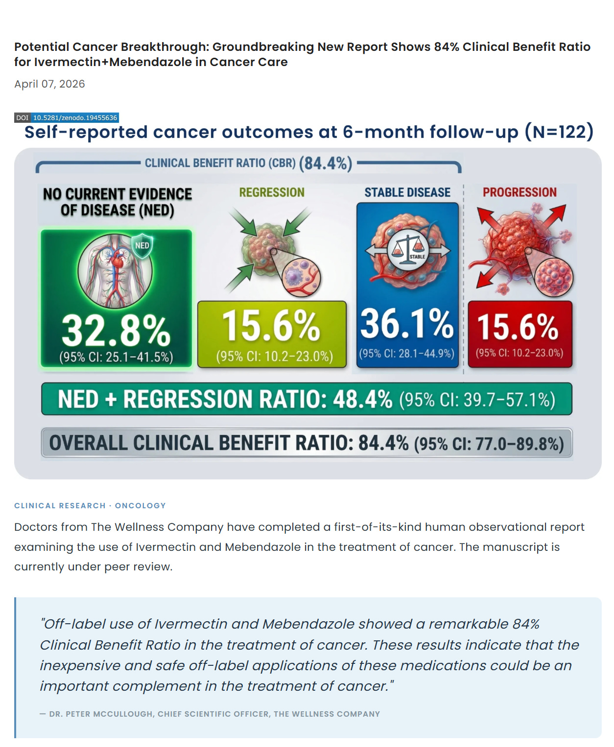 Dr. McCullough asserted that these results should immediately stimulate large-scale, prospective, double-blind randomized trials by the National Cancer Institute. In the absence of such institutional action, he encourages patients interested in this approach to consult with their oncologists and utilize TWC’s platform to join their ongoing observation cohort. He emphasized that for many patients facing serious diagnoses, waiting years for government-led research is not a viable option.