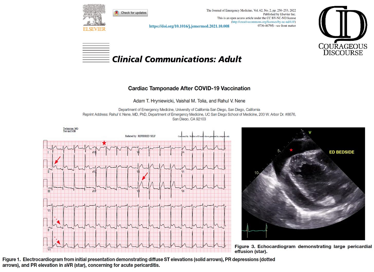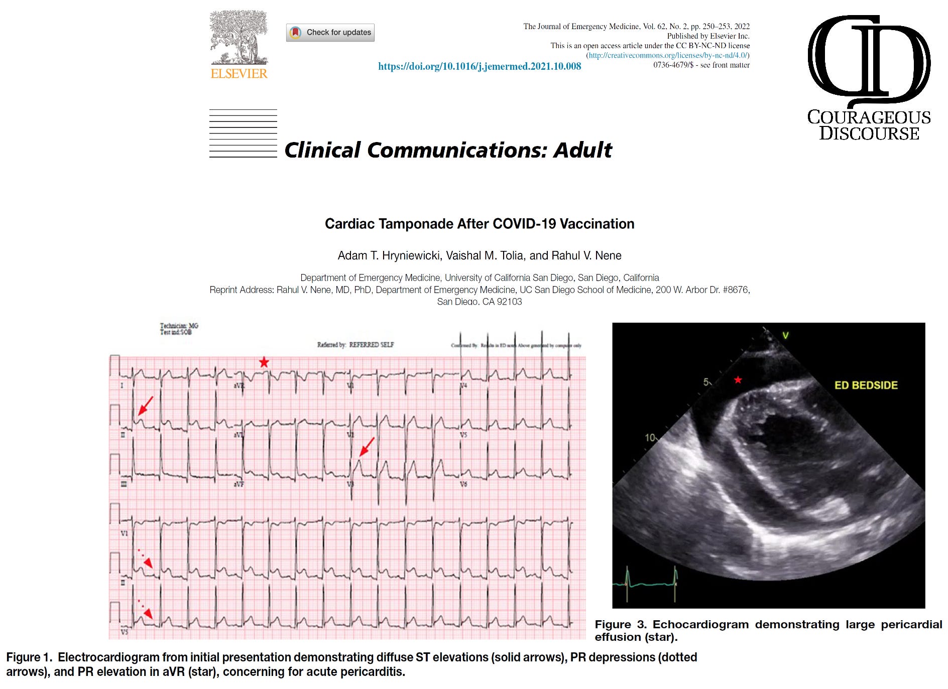 I am concerned that bias amongst editors and publishers to reject manuscripts describing adverse outcomes with COVID-19 vaccination is resulting in relatively few papers that could be describing a large number of real patients with adverse outcomes. Dr. Hryniewicki et al, in 2021 described a potentially fatal case of pericarditis (fluid around the heart) which was so severe it was crushing the heart and could have caused death at home (pericardial tamponade).