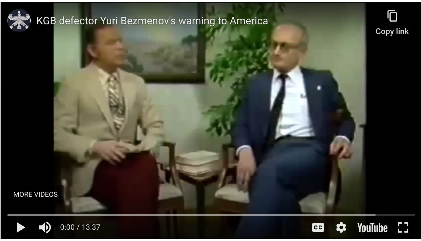 This letter is a glaring reminder of KGB defector Yuri Bezmenov’s statements—in a 1984 interview with American author G. Edward Griffin—about a process he called Ideological Subversion. He described the objective of this process as follows: