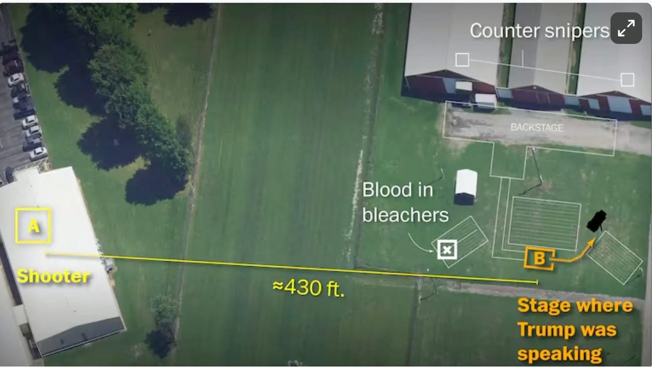 The assassination of Charlie Kirk on September 10, 2025 at Utah Valley University resembles the assassination attempt on Donald Trump near Butler Pennsylvania on July 13, 2024. I have not visited the sites to take my own measurements, but according to news reporting, the distance in both cases was about 143 yards.