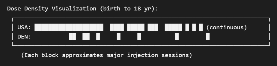 Both schedules aim to protect children from preventable diseases, yet their methodological philosophies diverge sharply. The U.S. system prioritizes population‑wide immunologic saturation and corporate throughput, resulting in early and frequent exposures. Denmark’s model favors prudence—vaccinating later, less often, and focusing on diseases that pose proven, ongoing domestic threats.