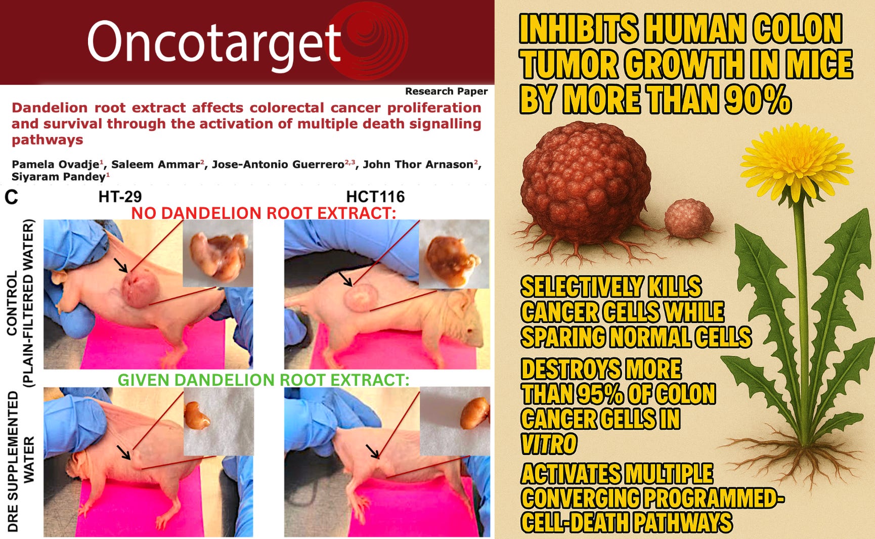 Dandelion Root Extract Kills 95% of Cancer Cells In Vitro and Reduces Human Colon Tumor Growth by Over 90% in Mice — With Zero Toxicity