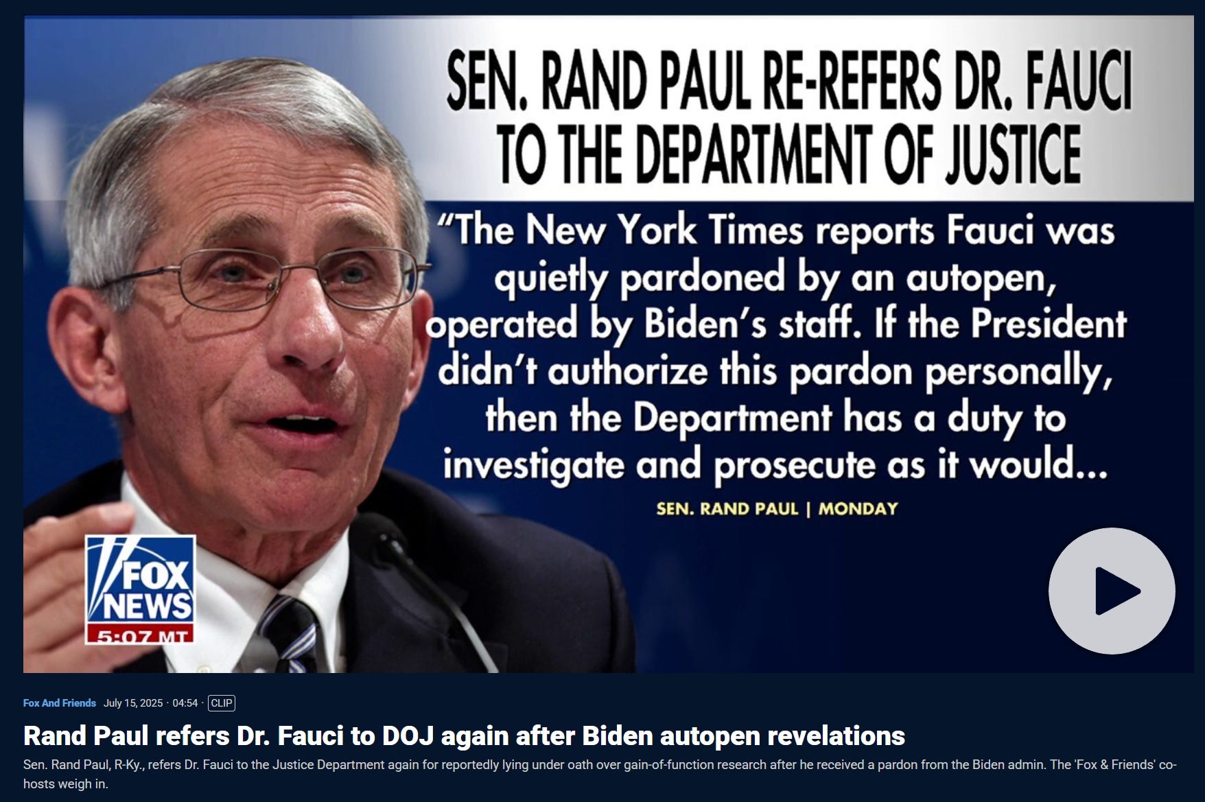 Was it possible that Fauci approached Biden in his neurologically compromised state and requested an unprecedented 10 year period of clemency for crimes he committed? Was it signed by Jeff Zients a top aide to President Biden? We may find out if the Justice Department assigns a special prosecutor and the case moves forward on two alleged crimes: 1) fraud on multiple levels, 2) mass negligent homicide.
