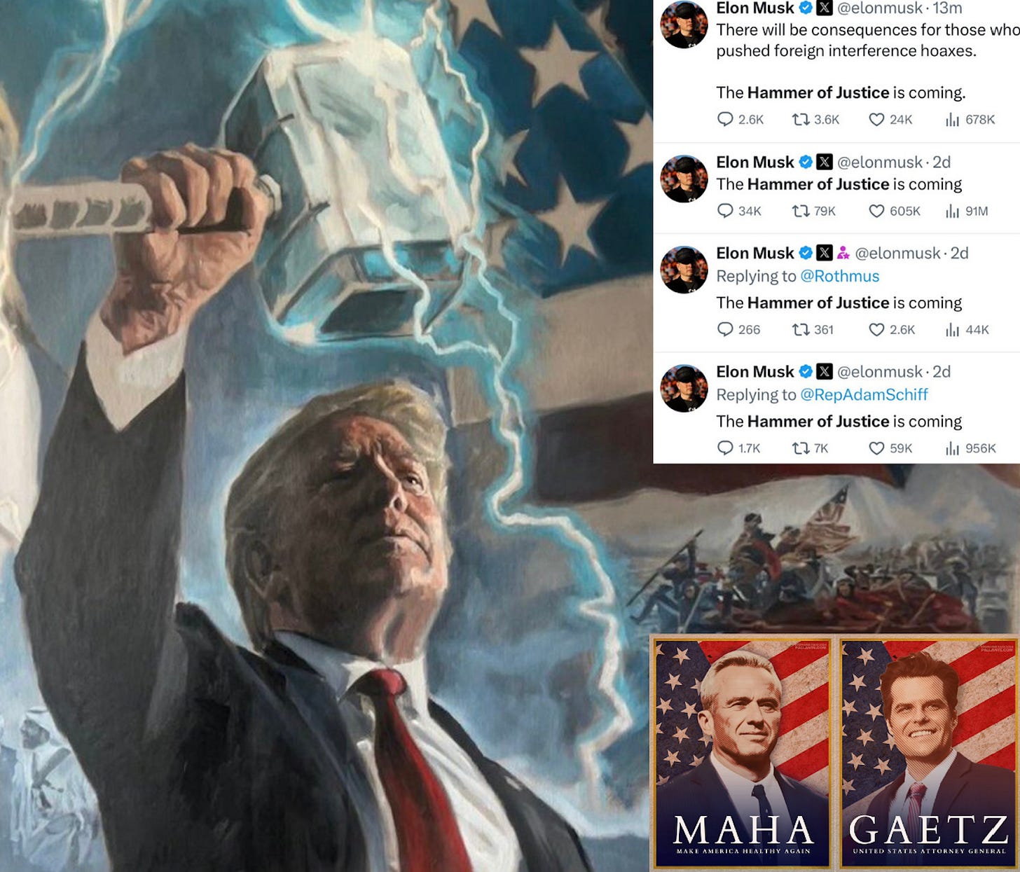 A few days ago, Elon Musk commented on an X post featuring himself (stating, “My pronouns are still prosecute/Fauci”) alongside the newly nominated U.S. Attorney General, Matt Gaetz. Musk declared, “The Hammer of Justice is coming.”