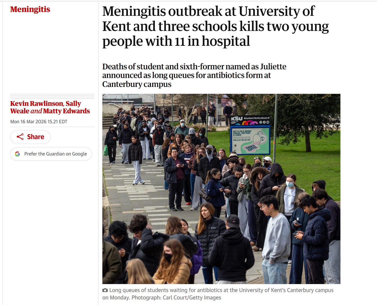 In March 2026, the United Kingdom experienced an “unprecedented” outbreak of invasive meningococcal disease centered around the University of Kent in Canterbury, Kent. The outbreak rapidly escalated over a single weekend, marking one of the fastest-growing clusters of meningitis recorded in the country’s recent history. Alter AI assisted on this breaking story.