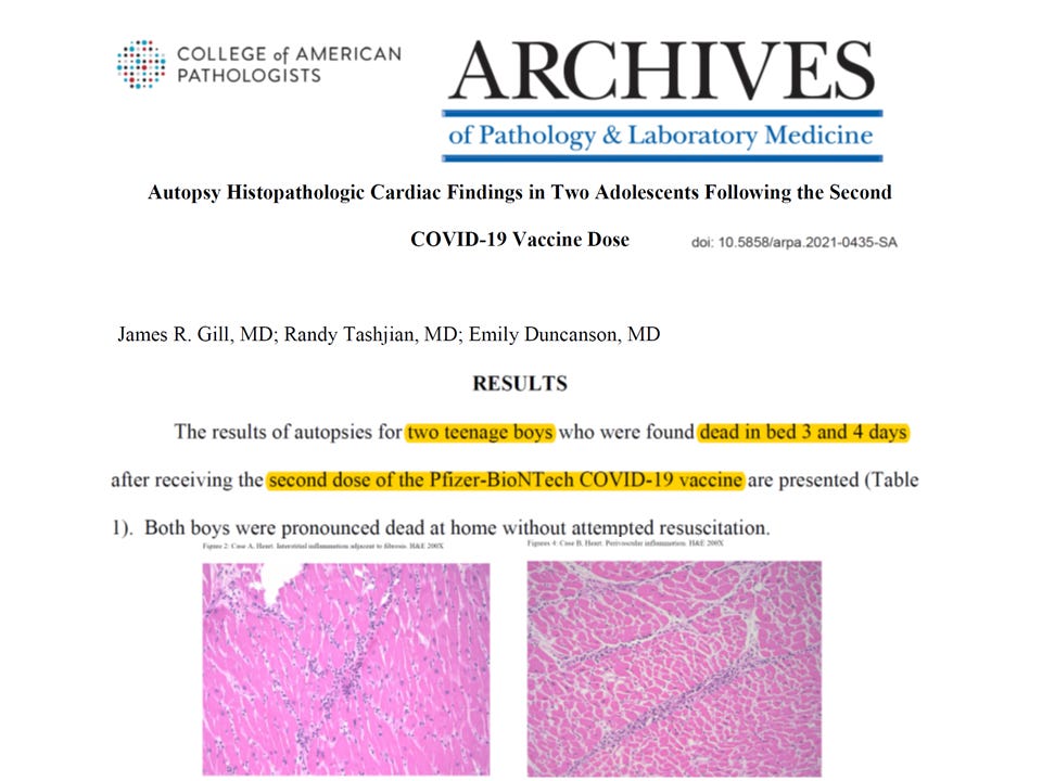 Dr. Marty Makary, Dr. Vinay Prasad, nor Secretary Kennedy were in attendance at this critical hearing in Washington D.C. 6 months ago. In the hearing, Dr. McCullough referenced multiple verified mRNA vaccine child deaths, including the tragic findings of Gill et al, who documented two teenage boys found dead at home just days after receiving the Pfizer vaccine. Autopsies confirmed unequivocal myocarditis as the cause of death. It’s important to note that this paper was published in 2021.
