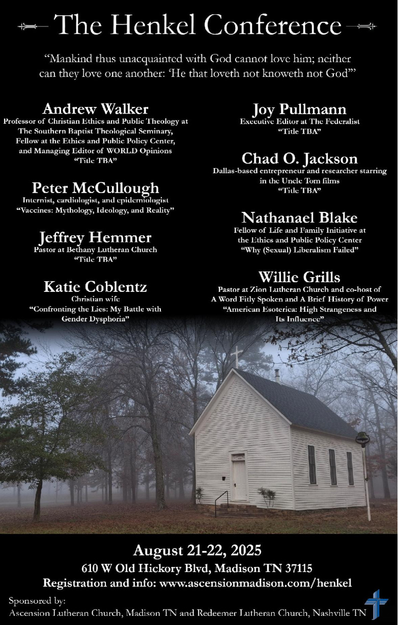 Please enjoy this long format, Chautauqua-style lecture Dr. McCullough delivered at the Annual Henkel Conference led by Rev. Greg Bauch pastor of Ascension Lutheran Church in Madison, TN, a supporting congregation of Luther Classical College. Each year Bauch assembles a group of talented speakers and intellectuals for wonderful dialectics about the issues and controversies of our time. A dialectic is a method of examining and discovering truth through the logical debate and interaction of opposing ideas, where a starting argument (thesis) is challenged by a counter-argument (antithesis), and the conflict between them is resolved into a new, more refined idea (synthesis). It can also refer to the inherent contradictions within a situation or within opposing concepts that drive change and development.