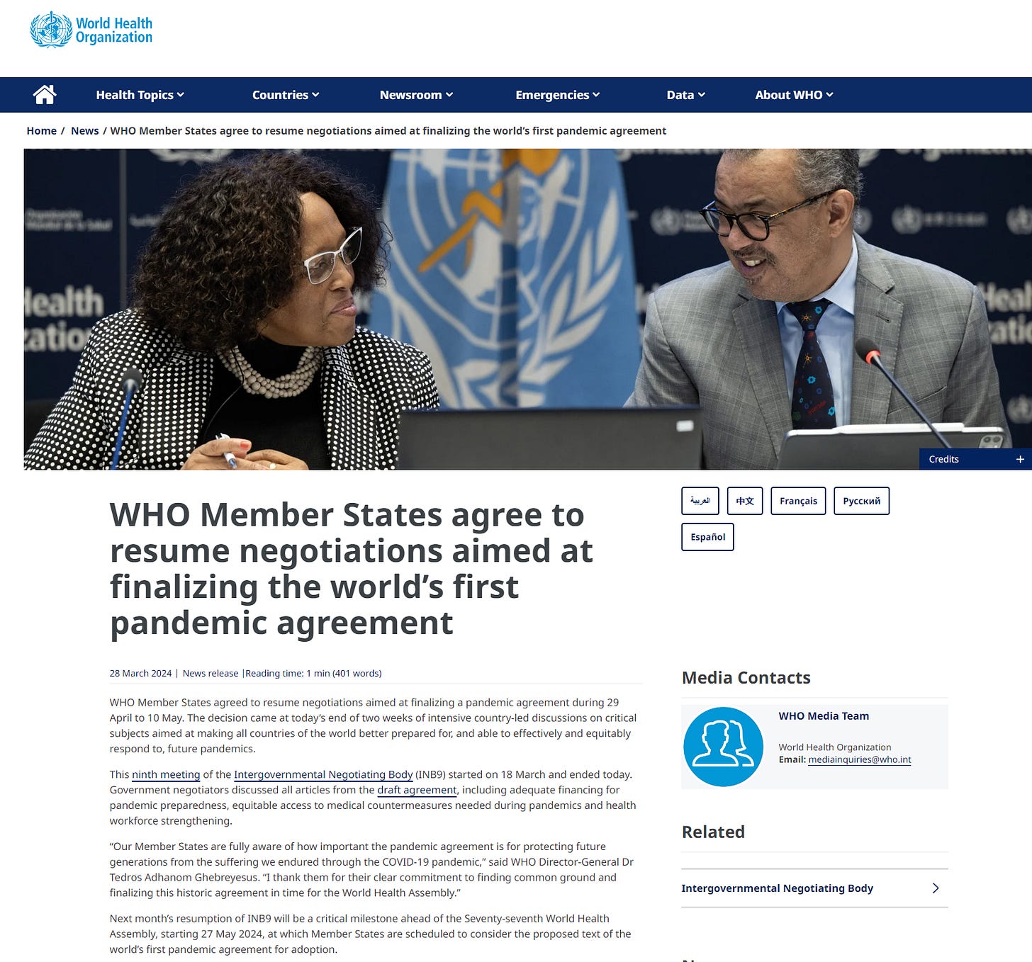 The media campaign for the decades-old problem of avian influenza H5N1 is perfectly timed about a month before the WHO’s ninth meeting of the Intergovernmental Negotiating Body (INB9). In March, government negotiators discussed all articles from the draft agreement, including adequate financing for pandemic preparedness, equitable access to medical countermeasures needed during pandemics and health workforce strengthening. Next month’s resumption of INB9 will be a critical milestone ahead of the Seventy-seventh World Health Assembly, starting 27 May 2024, at which Member States are scheduled to consider the proposed text of the world’s first pandemic agreement for adoption.
