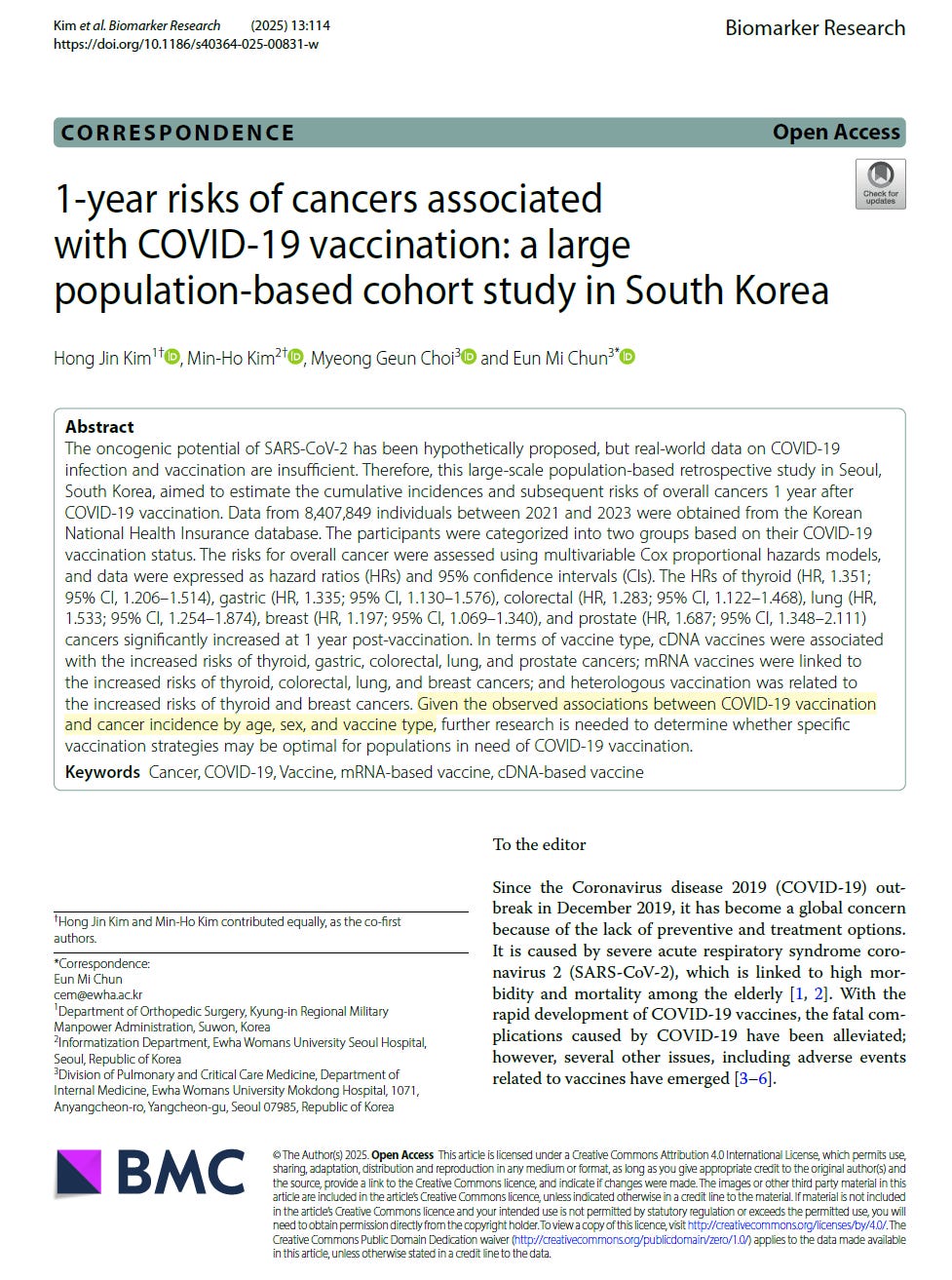 Cancer is on the rise in the COVID-19 vaccinated as demonstrated by Kim et al. Because all forms of vaccination were shown to have increased cancer risks, the Spike protein may be the common, oncogenic part of the vaccines.