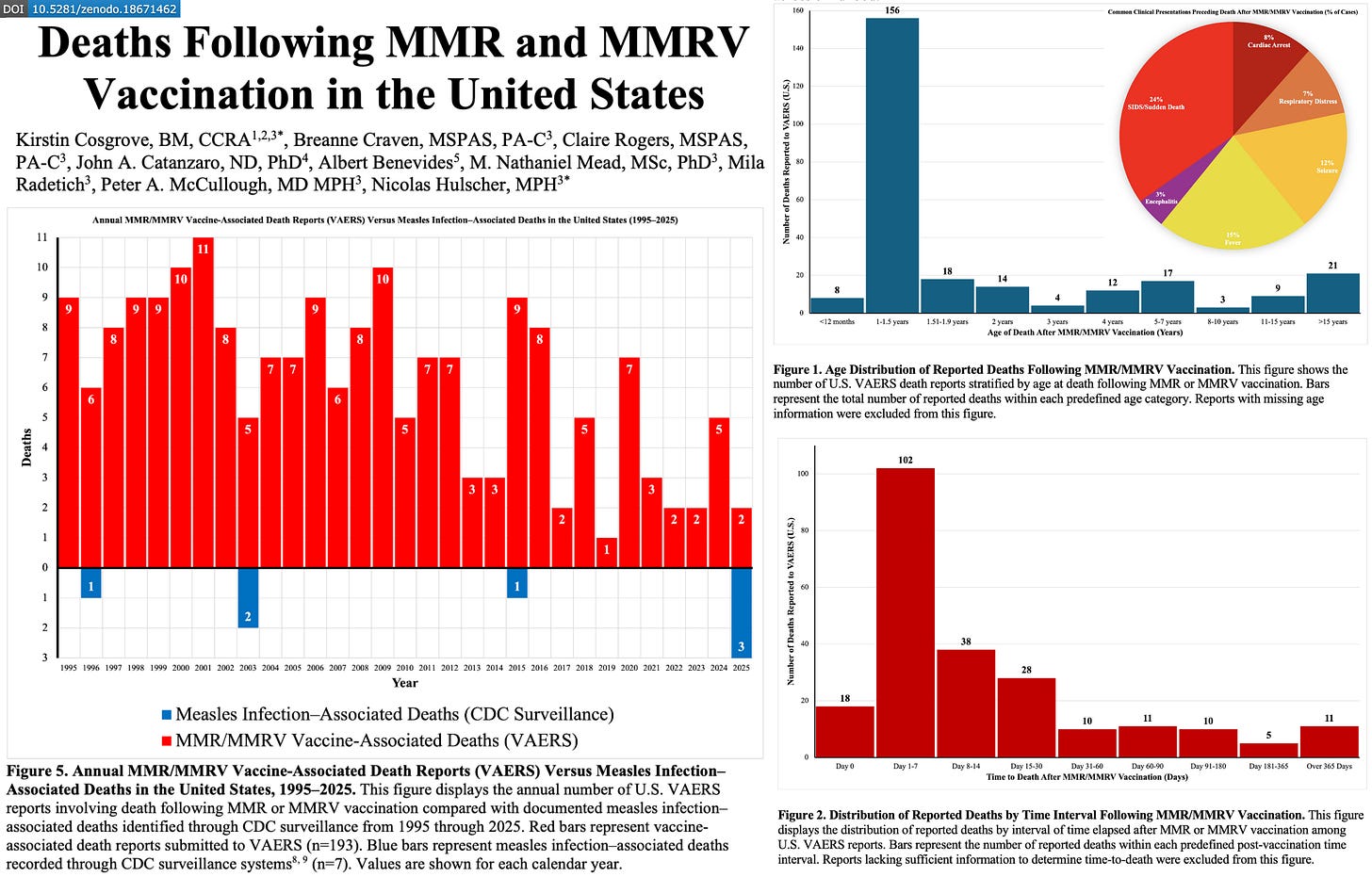 Our study titled, Deaths Following MMR and MMRV Vaccination in the United States, analyzed death reports following MMR and MMRV vaccination using the U.S. Vaccine Adverse Event Reporting System (VAERS) and identified a serious mortality safety signal.