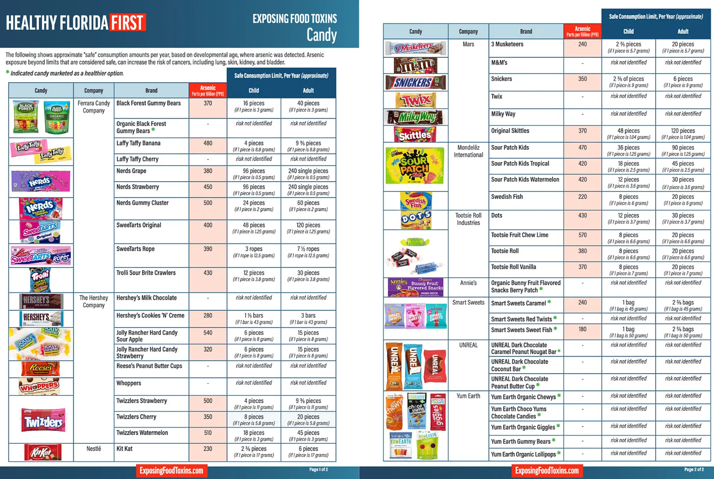 The Florida Department of Health recently tested 46 popular candies heavily marketed to children. 28 of the 46 products contained elevated levels of arsenic, a known human carcinogen associated with increased risks of skin, bladder, lung, kidney, and liver cancer with repeated exposure over time.