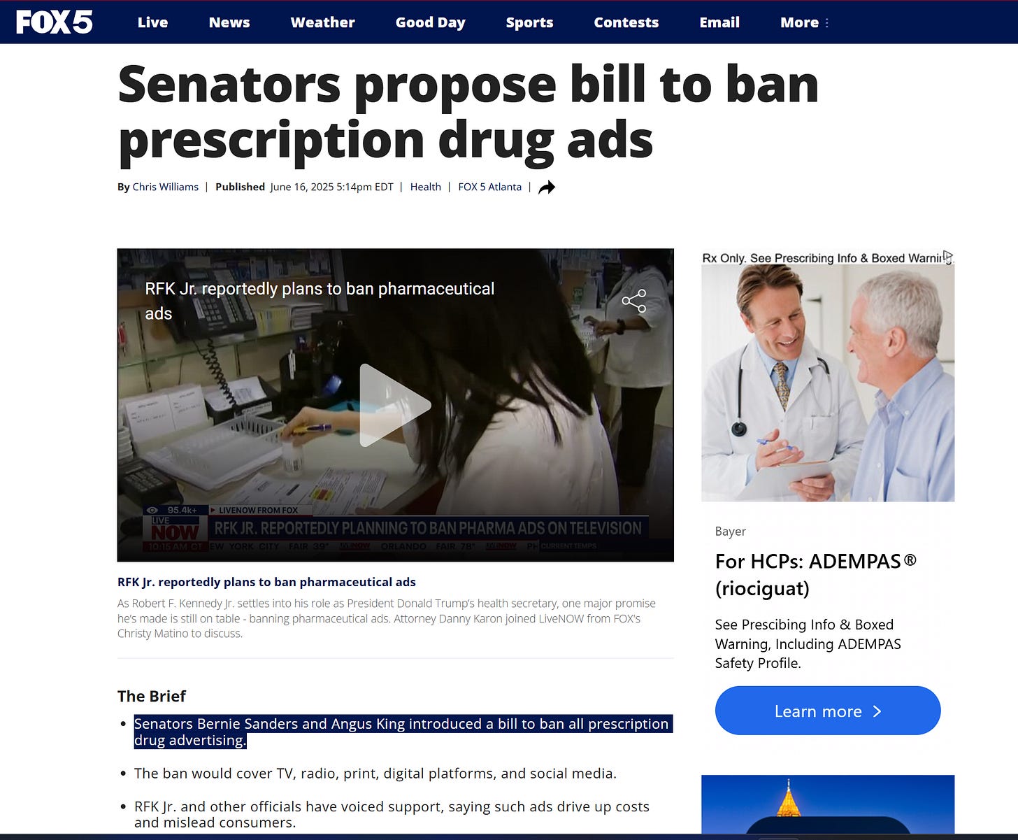 Please enjoy this update from June 16, 2025 with Dr. McCullough on Outside the Beltway hosted by John Fredericks who is vaccinated and concerned about Spike protein in his body. McCullough said Fredericks should get his Spike antibody levels checked as a proxy for lingering vaccine effect. In general, the next move is McCullough Protocol Base Spike Detoxification if there is an inference of residual Spike protein accumulation. They also tackled RFK rebuild of ACIP and the news that Senators Bernie Sanders and Angus King introduced a bill to ban all prescription drug advertising. This is important, since once a pharmaceutical company has a TV advertising contract, they control the entire platform in terms of health news.
