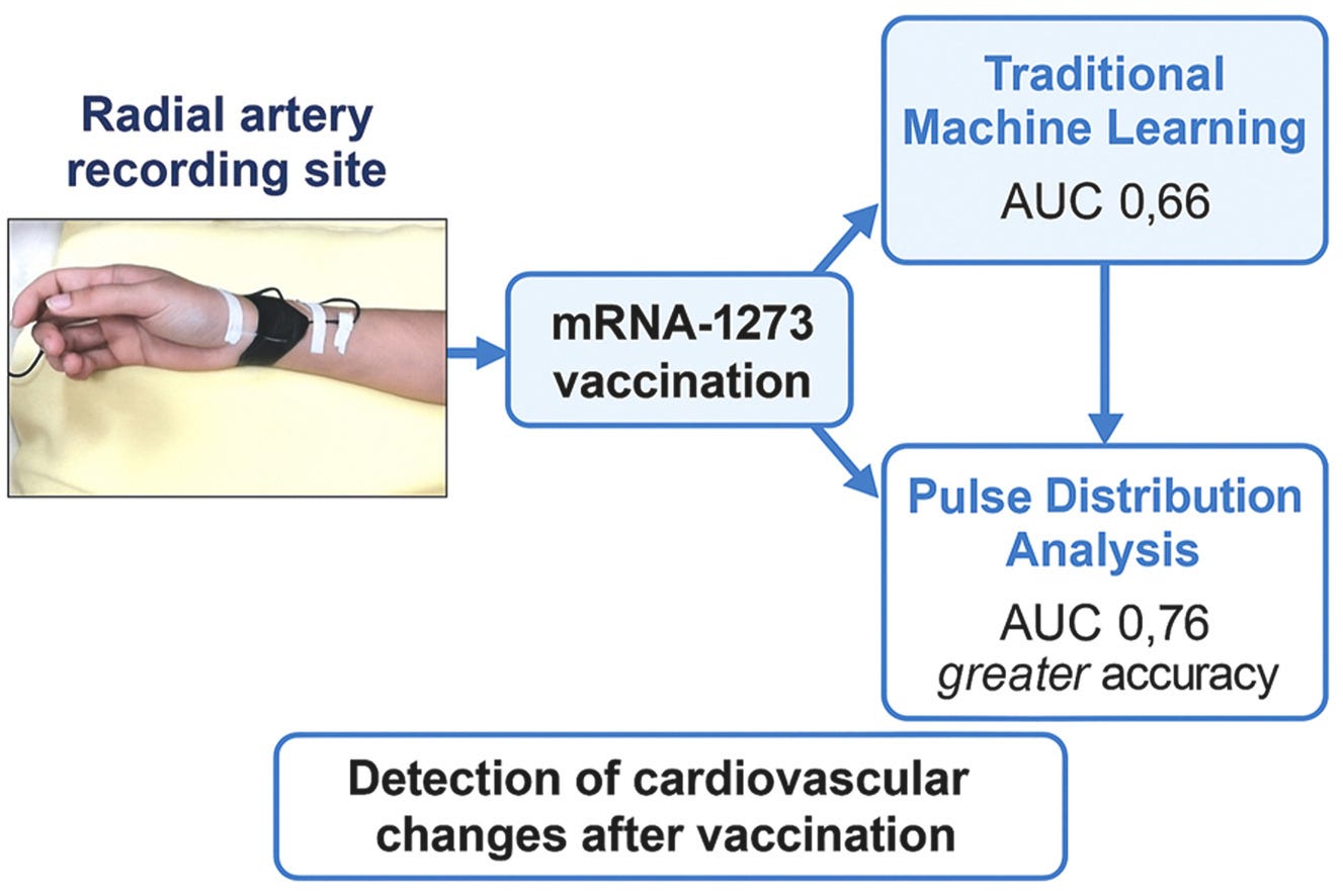 Subclinical vascular changes induced by Moderna’s mRNA-1273 vaccine could be effectively detected by noninvasive real-time pulse distribution analysis.