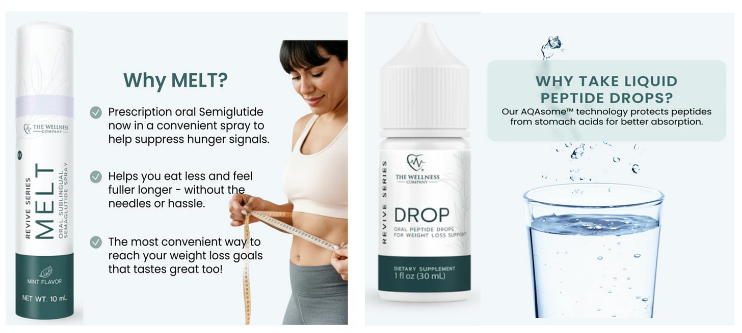 Please enjoy this interview I had on NewsMax Health Report with Katrina Szish and her co-host on the GLP-1 RA drugs. Realize that MELT oral spray and DROP from The Wellness Company even further extend the GLP class to novel delivery, well tolerated products, that allow a less invasive more personalized approach for your weight loss journey.
