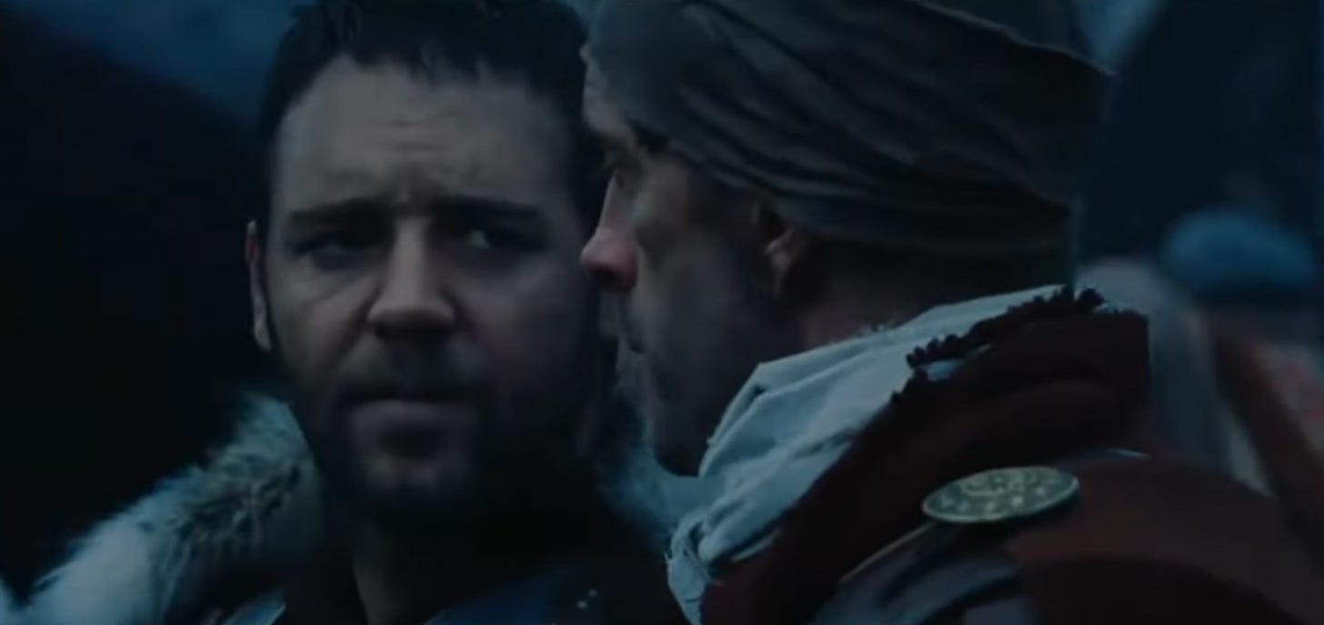 This reminds me of the dialog between Maximus and his general Quintus, just before the opening battle scene against a Germanic tribe along the Danube frontier. Quintus, who soon reveals himself to be a traitor, says of the defiant Germans:
