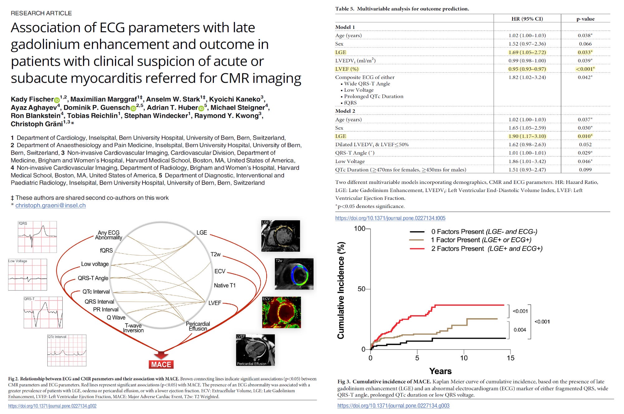 Both the ECG and cardiac MRI results where prognostic for the composite outcome. Conversely, those with normal ECG and MRI findings had the lowest rates of cardiac events over 15 years. The importance of this study for our patients with COVID-19 vaccine myocarditis is that each patient and their family should know and keep their initial and follow-up ECG and MRI results. Hopefully normalization will confer the best overall outlook. Conversely, those with abnormal findings should have continued close follow-up.