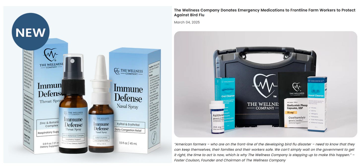 At The Wellness Company we believe a far more practical approach is to use Immune Defense nasal and throat sprays twice a day to guard against ambient H5N1 exposure. For higher risk individuals, we have a free bird flu kit available which will help prevent serious cases. Together Immune Defense and TWC Bird Flu Kits eliminate the need for routine PCR testing or counterproductive biosecurity measures.