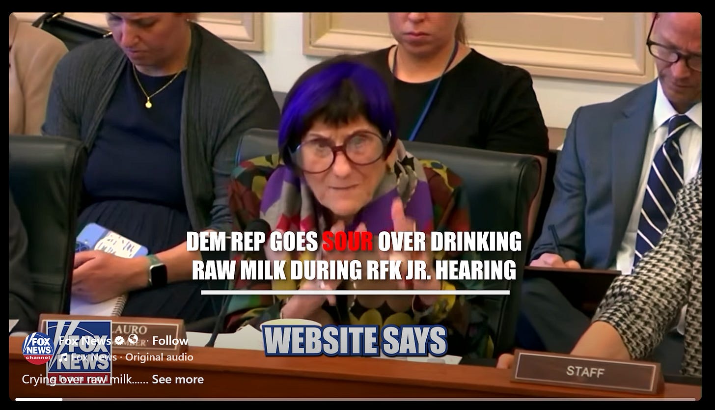 While I was preparing for a national TV interview that could bring up crazed, purple-haired 83 year old Rep Rosa DeLauro (DT-CT) admonishing HHS Secretary Robert F. Kennedy, Jr on raw milk, I decided to think about this issue. My off-the-cuff and snarky soundbite would be “well, I wouldn’t die my hair purple but I also wouldn’t drink raw milk.”