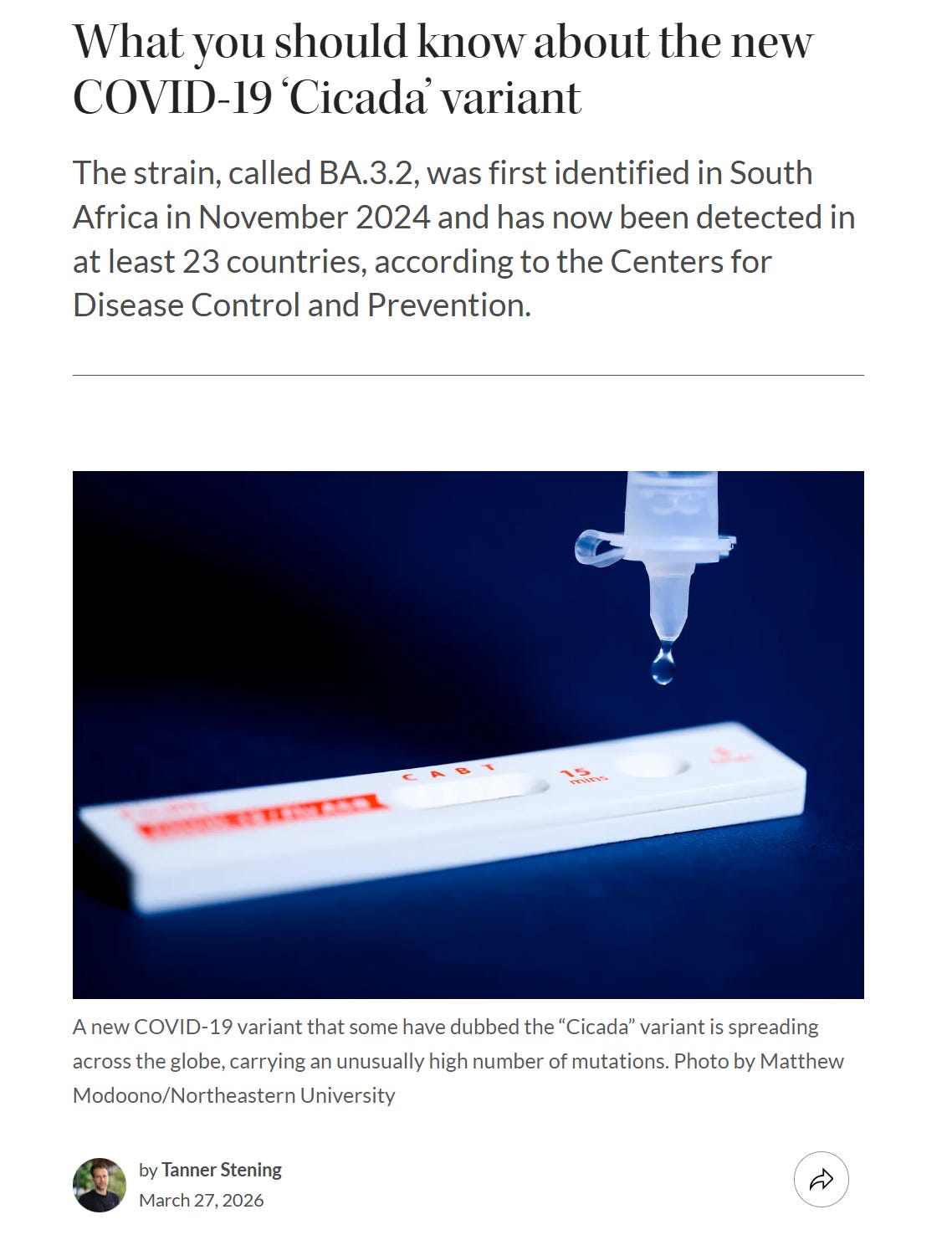 Due to their long, quiet nymph stage underground followed by a dramatic emergence and molting, they symbolize a profound awakening, patience, the shedding of old skins, and the enduring cycle of life. No surprise this the moniker for the newest variant of SARS-CoV-2, BA.3.2. Alter AI hatched this story ahead of summer and the annual fall CDC nRNA COVID-19 booster campaign.