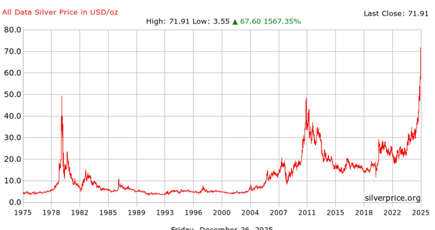 As you mentioned, silver has deep roots in economic history. Silver, at one time, was more valuable than gold. Silver has been used throughout every century. Silver is critical for industry. However, we currently face severe geopolitical issues, and the most significant factor affecting confidence in the currency is war. War destroys economics. Ignore all the talk of peace, it's not going to happen. Silver is not telling us that the US dollar is collapsing, but rather that we will see wars on an international scale starting in 2026.