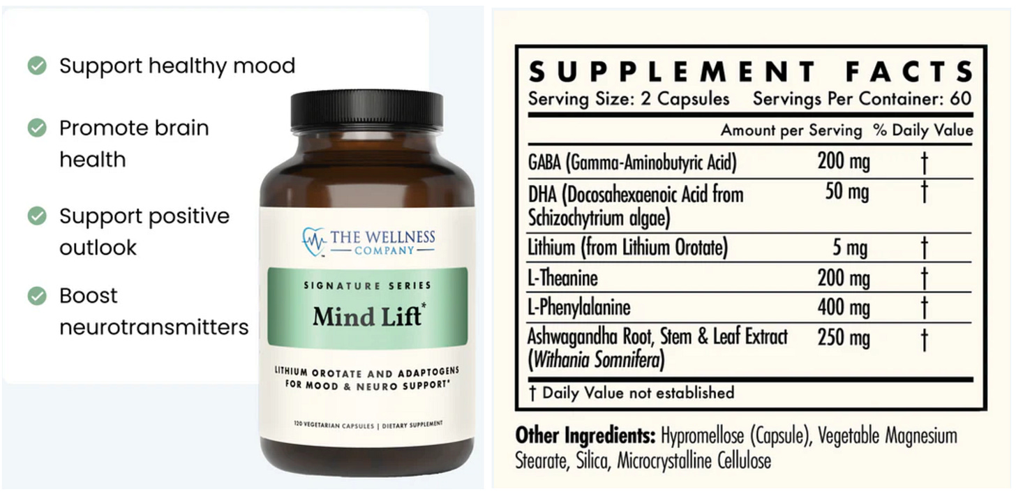 Mind Lift by The Wellness Company (TWC) is marketed as a natural nootropic designed to enhance mood, clarity, and cognitive performance without the harsh effects of synthetic stimulants. According to TWC’s product page and their accompanying blog “Unlock Your Mind’s Full Potential – Naturally” (2024), Mind Lift blends adaptogenic botanicals, amino acids, fatty acids, and trace minerals to support mental wellness in a holistic, synergistic manner.