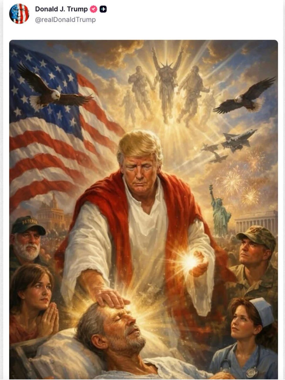The icon of Donald the Healer and Light-Bringer is fascinating in its Warholian irreverence for history, culture, reason, philosophy, art, literature, and religion. It is a sublime Magnum opus insaniae (Masterpiece of Insanity).