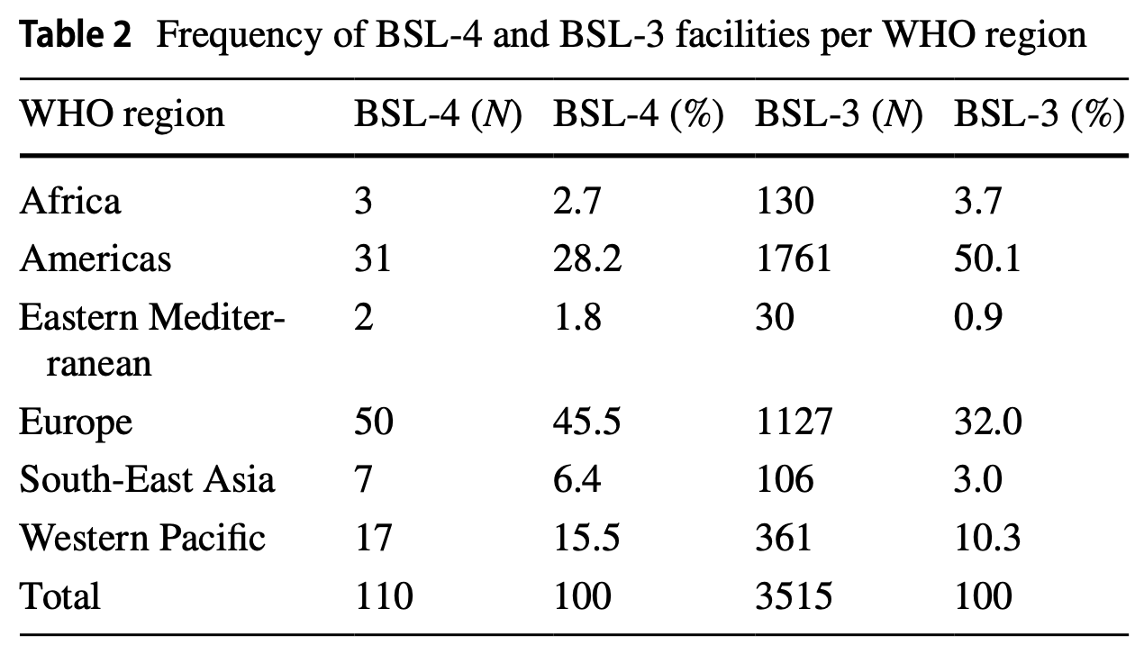 47.1% of all BSL-3 labs are in the United States
