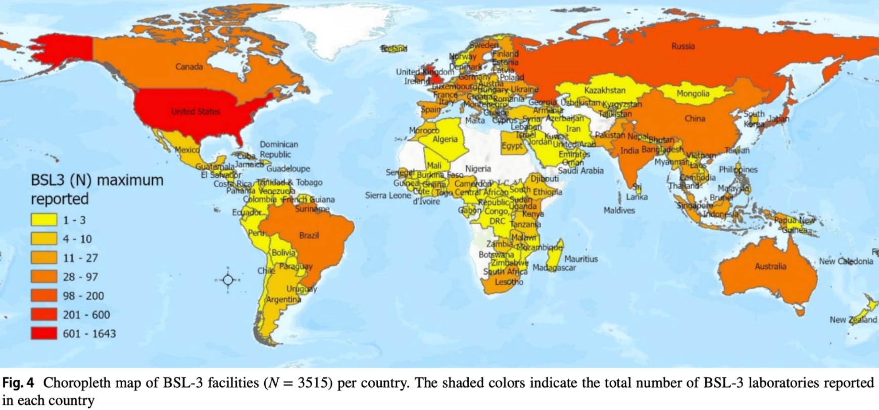 149 countries have at least one BSL-3 lab