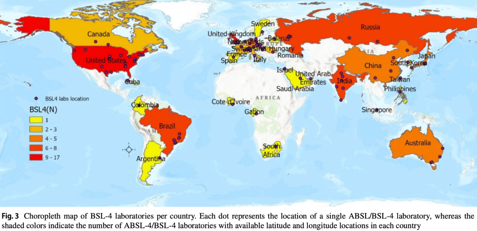 34 countries have at least one BSL-4 lab