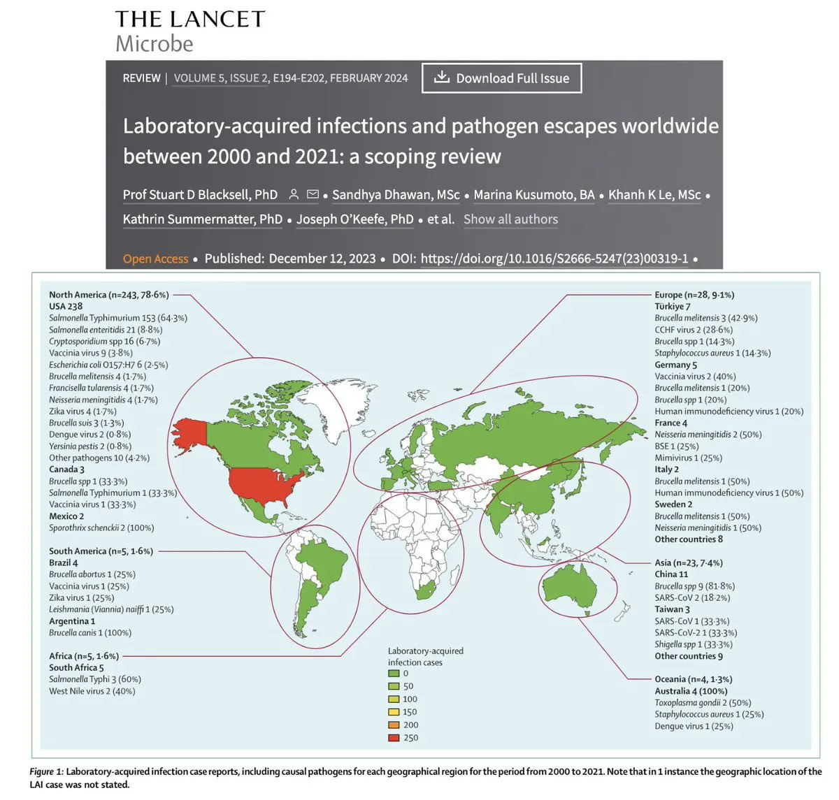 The study cites prior data documenting 309 laboratory-acquired infections involving 51 different pathogens between 2000 and 2021, including cases that resulted in fatalities .