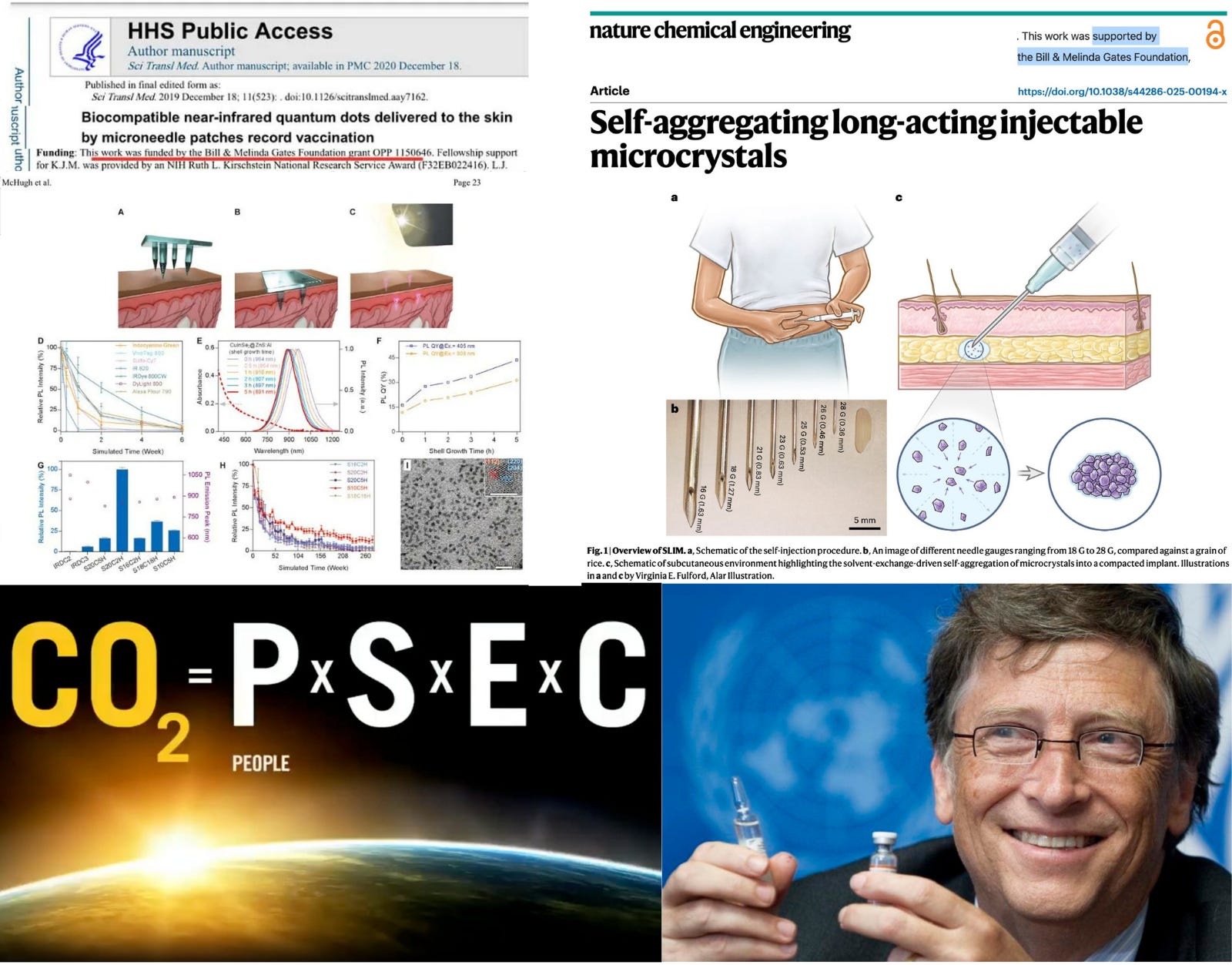 Gates Foundation funded microneedle patch implants that deliver permanent quantum dots for use as biological vaccine passports.
