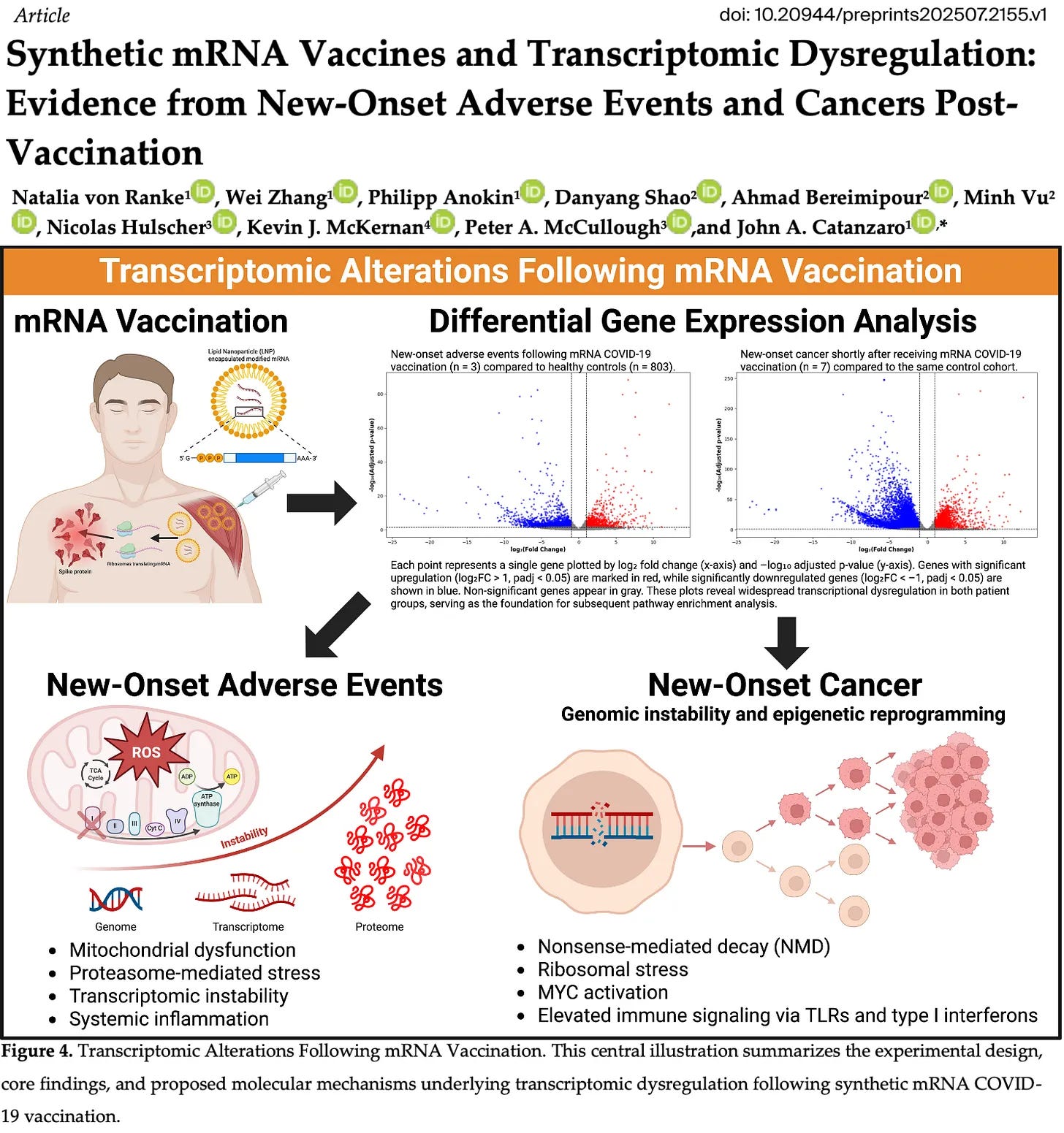 Thousands of critical genes regulating immunity and cancer suppression are dysregulated after mRNA injection.