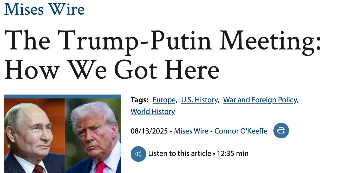 For more information about the war in Ukraine and the forthcoming summit, please read the following excellent essay by Connor O’Keeffe at the Mises Institute.