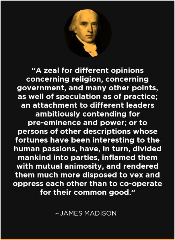 America’s greatest political thinker, James Madison, spent innumerable hours thinking about the ruinous effect of passions on public life, and the practical question of how to subordinate them to reason. He believed that managing public passions was the single greatest challenge that faced an elected leader, and he frequently expressed skepticism that it was possible. Alas, I fear that—as funny as I find him—Trump is not up for this challenge.