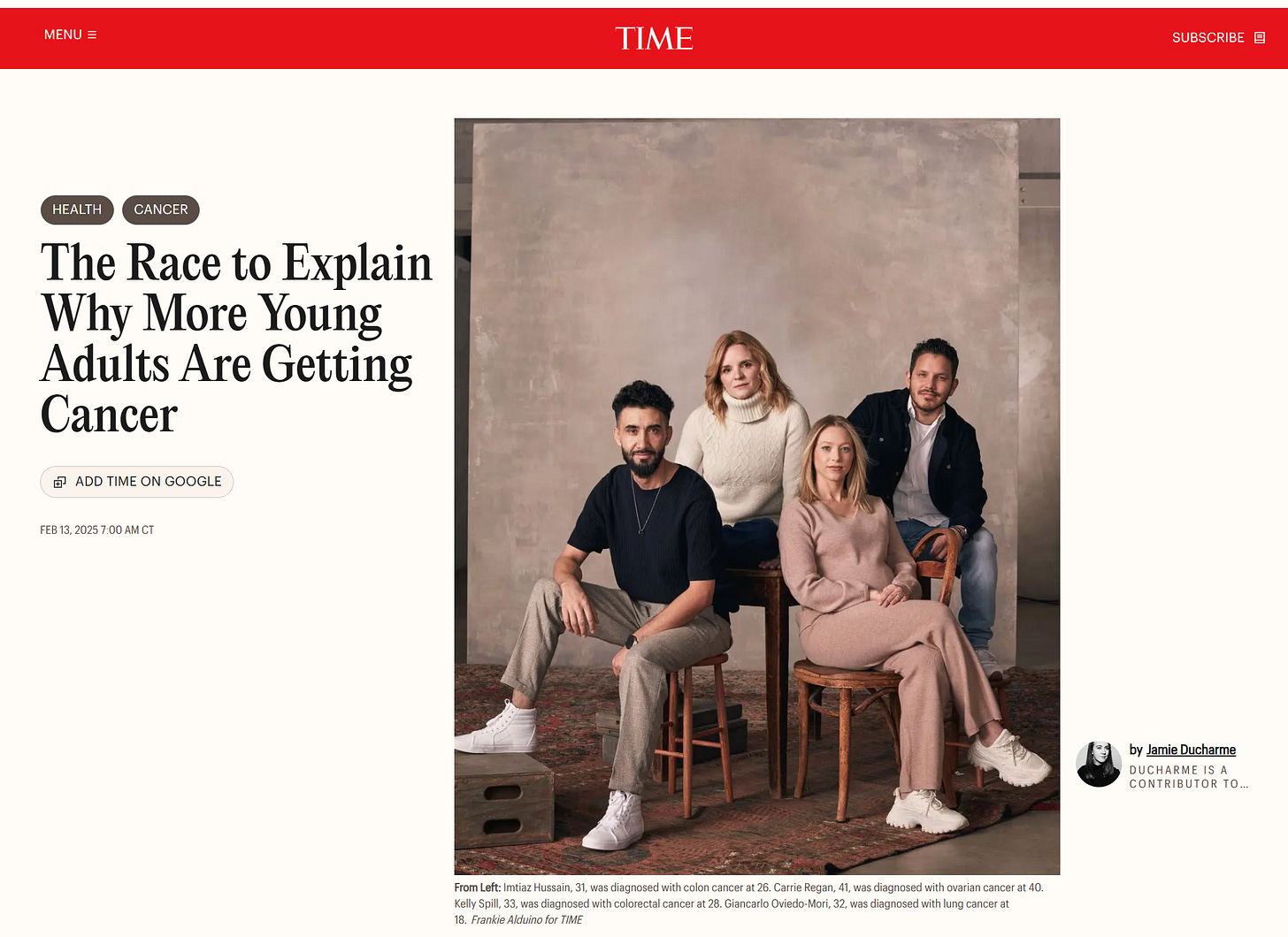 Ducharme J. The Race to Explain Why More Young Adults Are Getting Cancer. TIME Magazine, Feb 13 2025.