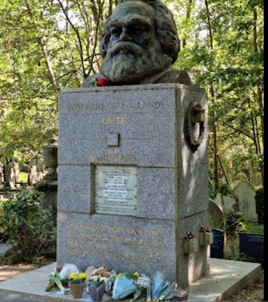 I gazed at photographs of the man with the big bushy beard who spent most of his days in the British Museum reading room—a perfect scholar. When I was 18, I made a special pilgrimage to his grave in Highgate Cemetery. Somewhere I have an ancient photo of myself—a goofy 18-year-old kid—standing in front of this colossal monument funded by a wealthy capitalist admirer.