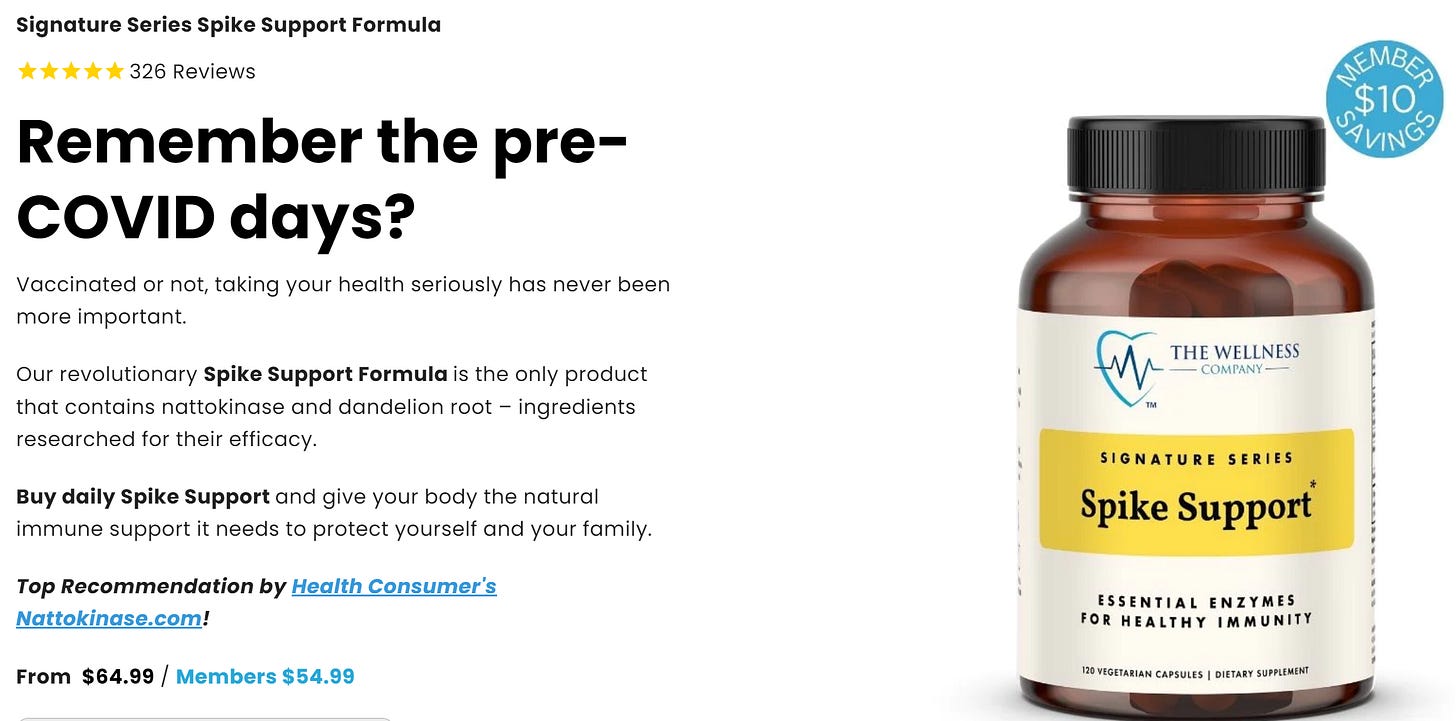 Many of my patients use Spike Support from The Wellness Company as their source of Nattokinase, a major component of the McCullough Protocol Base Spike Detoxification.