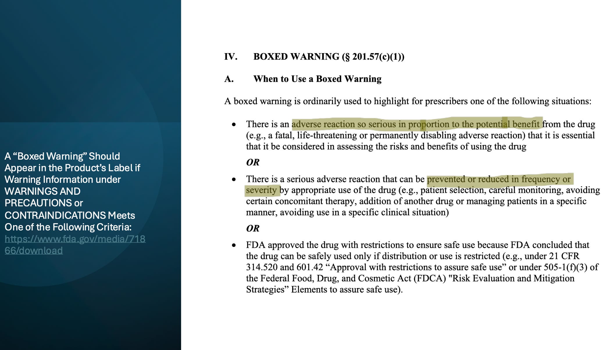 Dr. Taccetta explains that a black box warning is the FDA’s most serious labeling requirement. It's reserved for risks that are fatal, life-threatening, or permanently disabling—and when proper warnings can reduce harm. The warning must be placed front and center on prescribing information, especially when the risk can be mitigated by monitoring, patient selection, or dose adjustment.